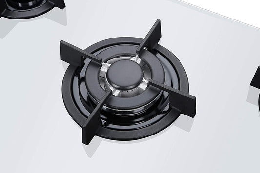 PIANO COTTURA 90 CM INCASSO VETRO BIANCO GAS 5 FUOCHI IN GHISA STAYLUX
