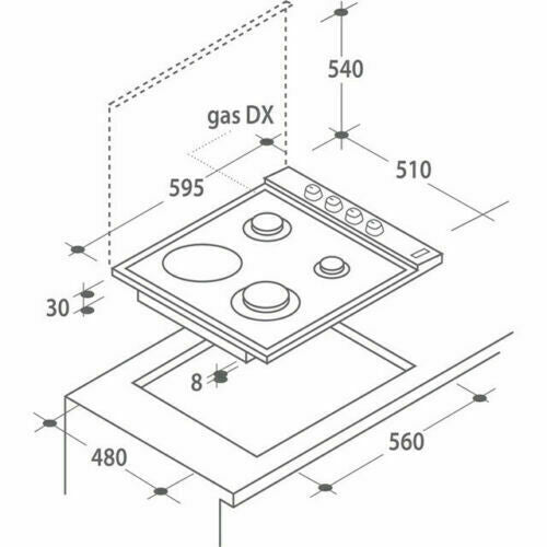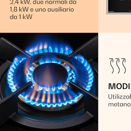 Staylux Piano cottura 75 cm vetro temperato nero fuochi in ghisa
